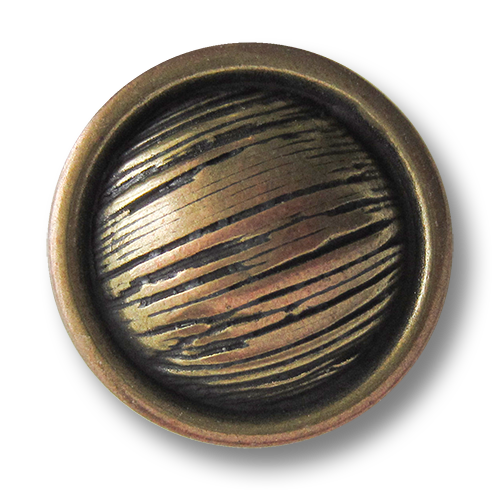 Beschreibung "Alt wirkende kupfer messingfarbene gewölbte Ösen Metallknöpfe mit Schraffierung"