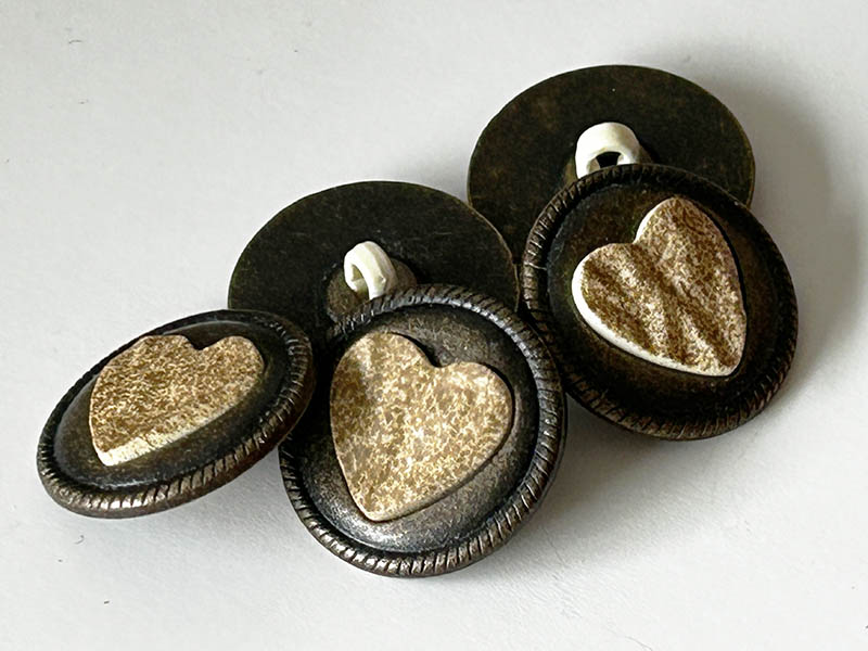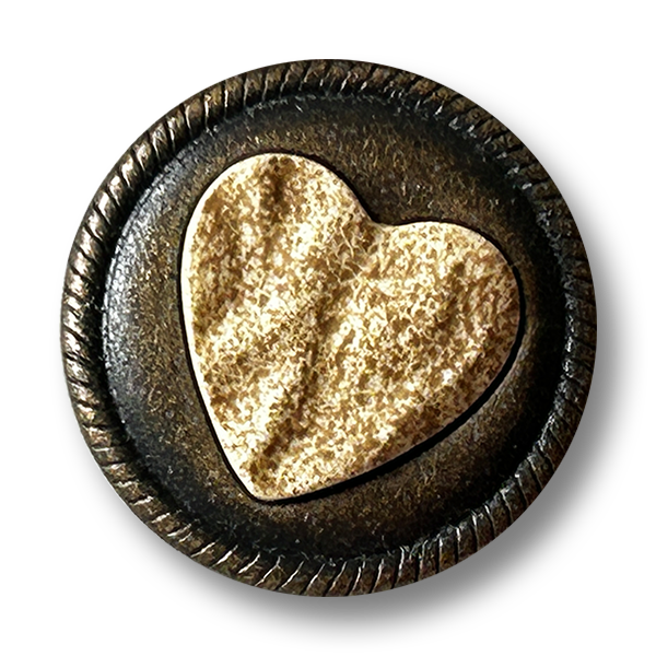 Altmessingfarbener Metallknopf mit Herz-Einlage (Kunststoff)