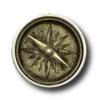 Beschreibung "Altsilbener Metallknopf wie Kompass"