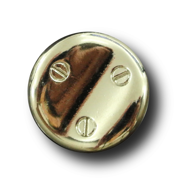 Diese silberfarbenen leicht glänzend schimmernden Metallknöpfe haben eine nicht ebene Oberfläche - und es sieht so aus, als seien 3 Schrauben hineingedreht worden.