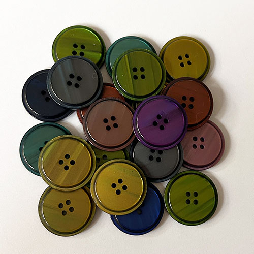 Es sind 4-Loch.Kunststoffknöpfe, alle wunderschön perlmuttartig schimmernd.