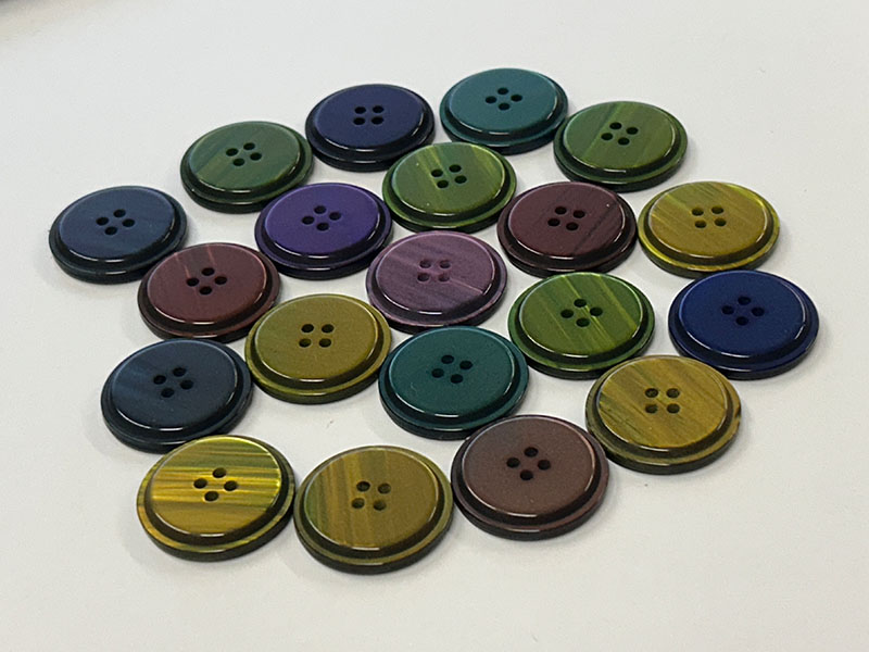 Wir bieten Ihnen hier ein Konvolut von 20 Knöpfen, die zwar dieselbe Form haben, sich jedoch durch ihre Farben unterscheiden.