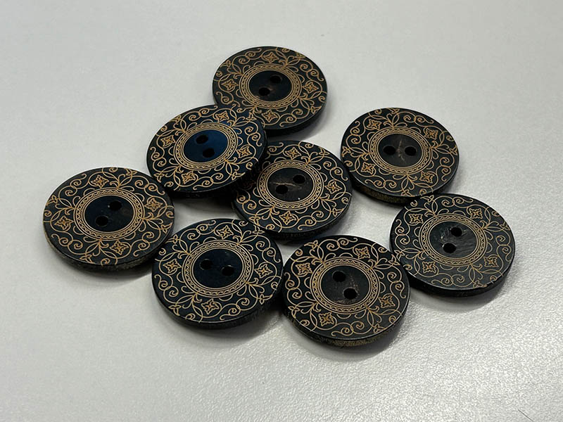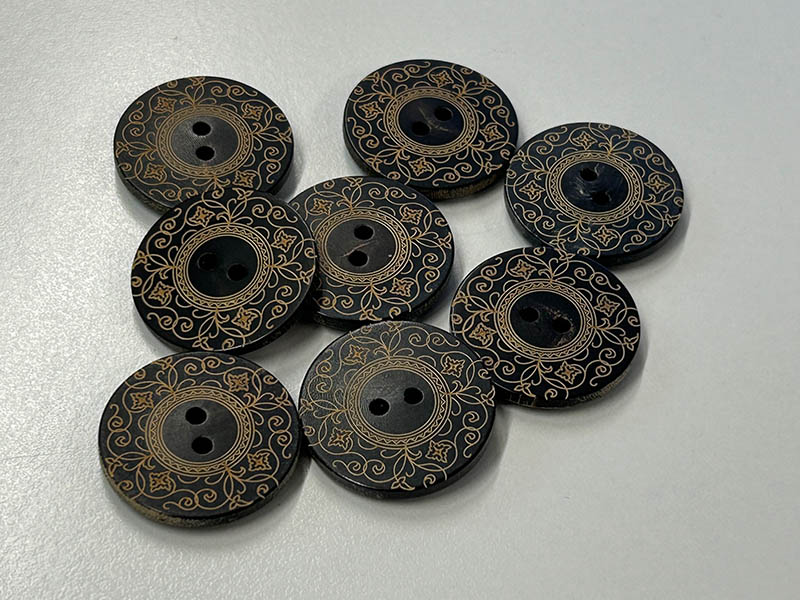 Edle Büffelhorn Knöpfe mit hochwertigem Lasermuster und 2-Loch-Befestigung.
