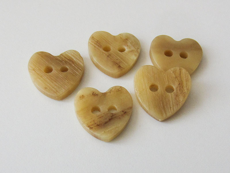 Beschreibung "Fesche beige melierte Herz Knöpfe aus Kunststoff in Horn Optik"