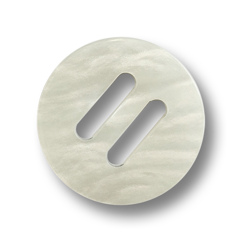Beschreibung "Flache, naturweiß schimmernde Kunststoffknöpfe mit zwei Schlitzen als Löchern"