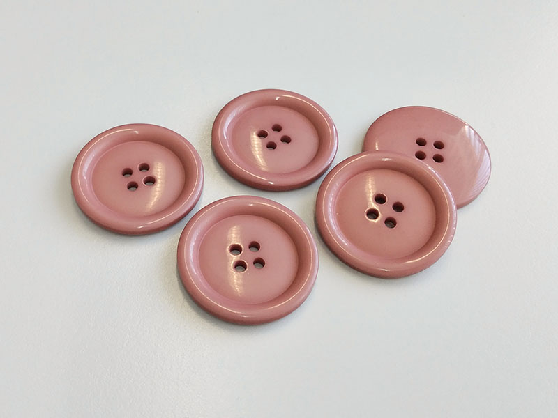 Beschreibung "Gedeckt altrosafarbene Mantelknöpfe aus Kunststoff mit vier Knopflöchern"