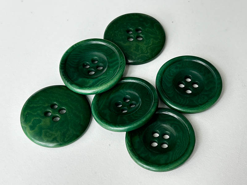 Beschreibung "Grün marmorierte Steinnuss Knöpfe mit natürlicher Maserung und klassischer 4-Loch Form"