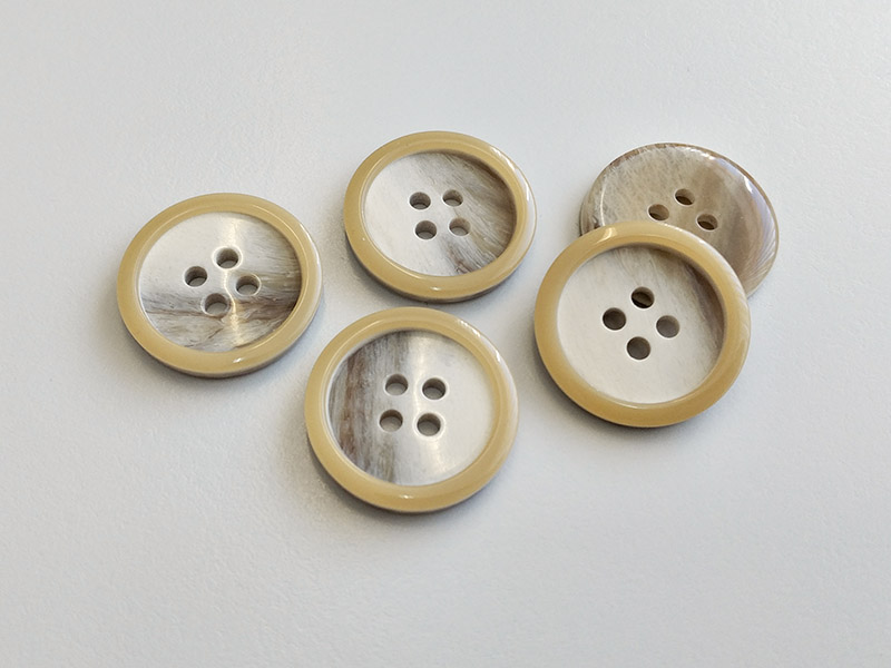 Beschreibung "Hübsche, herbstliche Kunststoffknöpfe mit beigem Rand und marmorierter Mitte"