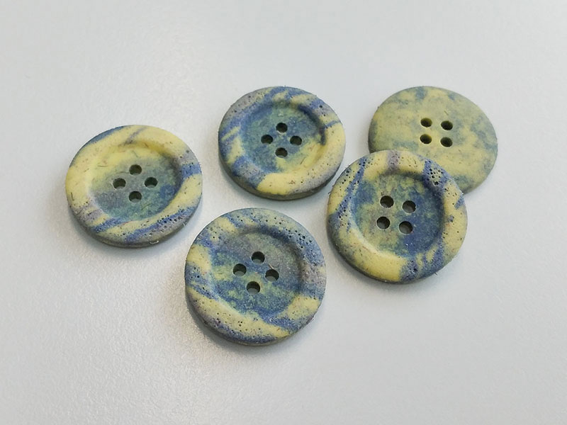 Beschreibung "Interessante Kunststoffknöpfe in Blau, Gelb und Grün"