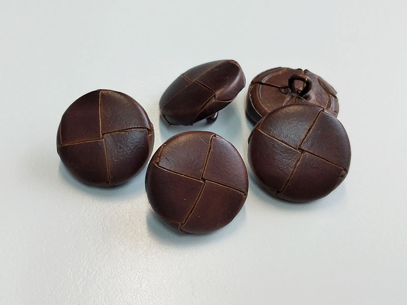 Beschreibung "Klassische Lederknöpfe in Braun, mit zeitlosem Flechtmuster"