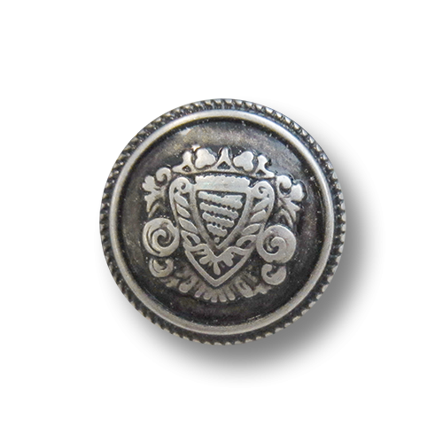 Diese kleinen Blazerknöpfe sind aus Metall und eisenfarben. Auf der gewölbten Vorderseite zeigen diese Metallknöpfe ein zeitloses Wappenmotiv. Auf der Rückseite haben diese Blazerknöpfe eine Öse an der sie befestigt werden.