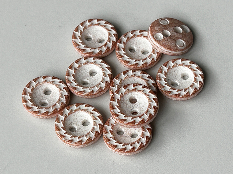 2-Loch-Knöpfe mit leichter, schüsselartiger Form und dezenter Randstruktur