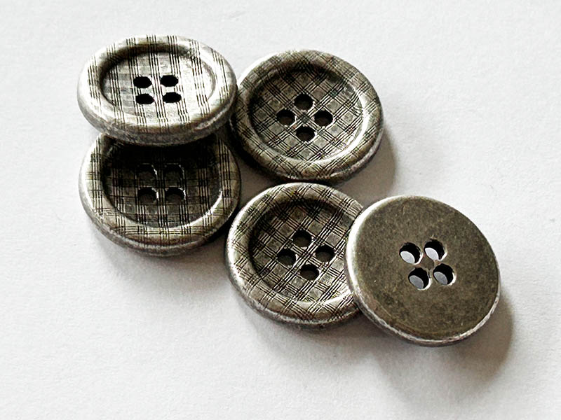 Beschreibung "Metallknöpfe mit Karomuster in Altsilber Optik – Vintage Style"