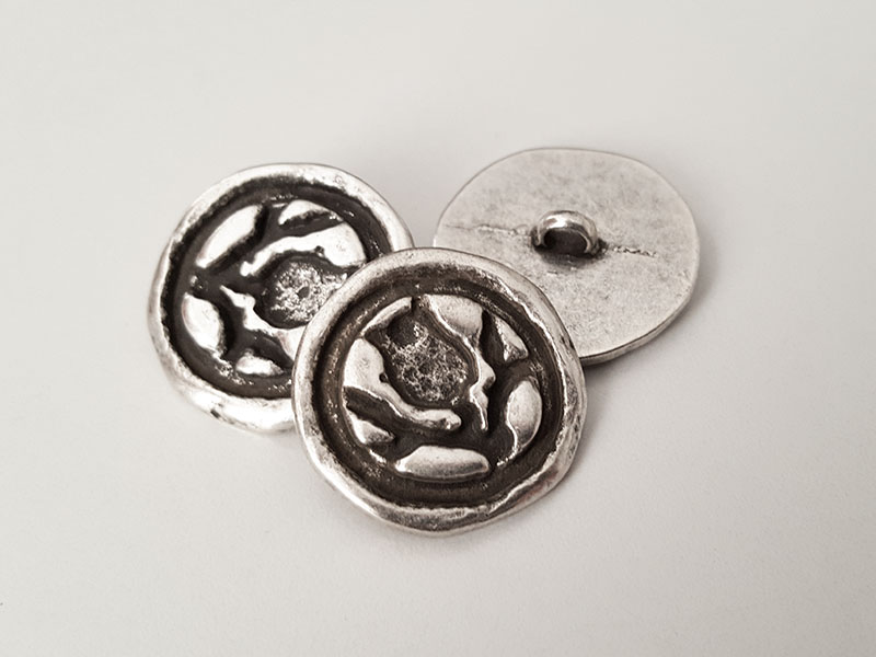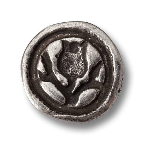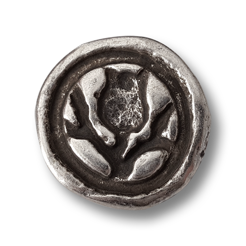 Beschreibung "Metallknopf mit Blume in Altsilberfarben"