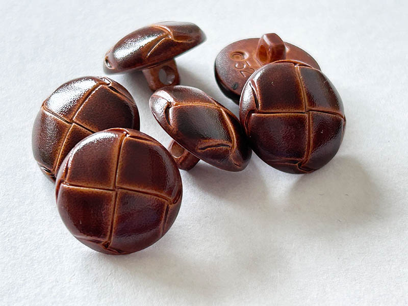 Beschreibung "Mttelbraune Kunststoffnöpfe in klassischer Lederoptik"