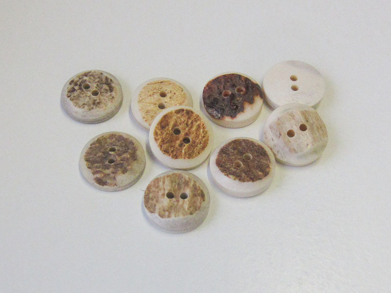 Beschreibung "Naturbelassene beige bis braune Zweiloch Hirschhornknöpfe für Trachten"