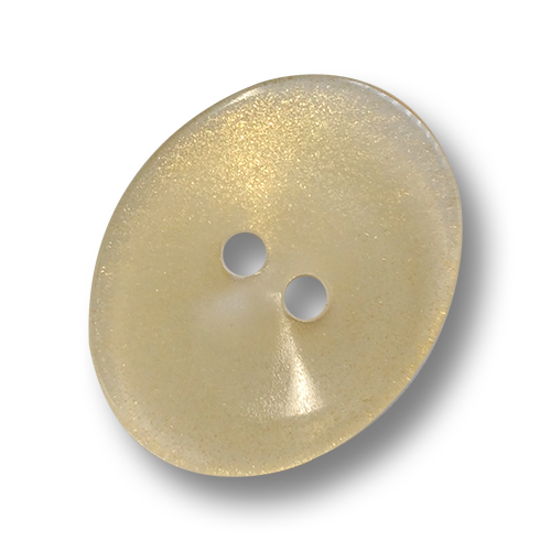 Beschreibung "Ovale Zweilochknöpfe aus Kunststoff in gelblich transparent mit goldfarbenem Schimmer durchzogen"