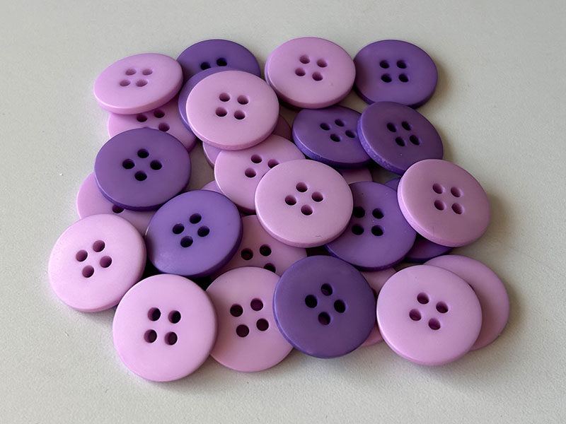 Beschreibung "Packung mit 30 lila-rosa gemischte Kunststoffknöpfe"