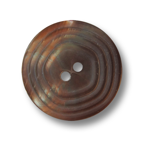 Beschreibung "Perlmutt-brauner Zweiloch Kunsttoff Knopf"