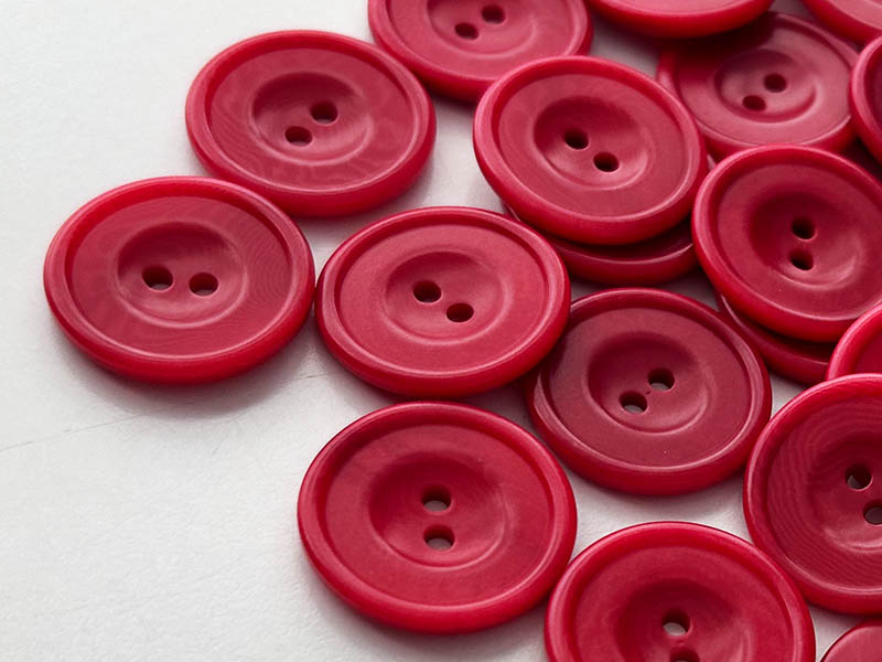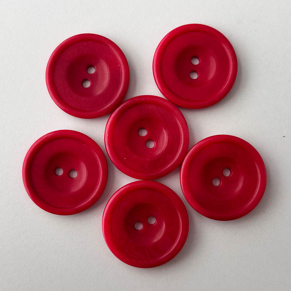 Jeder Knopf zeigt individuelle Farbverläufe von intensivem Rot bis zu leicht marmorierten