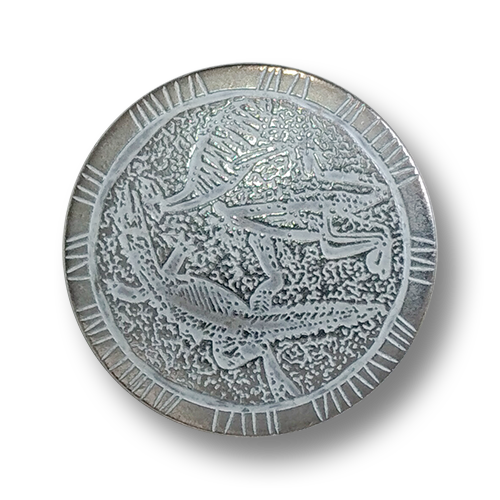 Beschreibung "Silberfarbene Metallknöpfe mit interessantem Paläontologie-Muster"