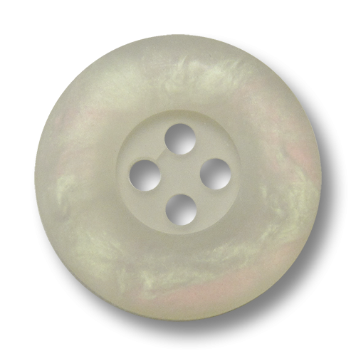 Diese hübschen Kunststoffknöpfe sind halbtransparent naturweiß und erinnern ein wenig an gefrostetes Milchglas. Die Knöpfe haben ein perlmuttähnliches irisierendes Schimmern in Rosa und Grün. Die Knopfmitte der Kunststoffknöpfe ist kreisförmig und abgesenkt und der elegante Rand ist breit und leicht gewölbt. Ansonsten haben die Knöpfe vier Knopflöcher zum Annähen.